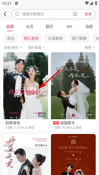 2、在婚礼邀请模板列表中,选择目标模板,进入模板预览页面。