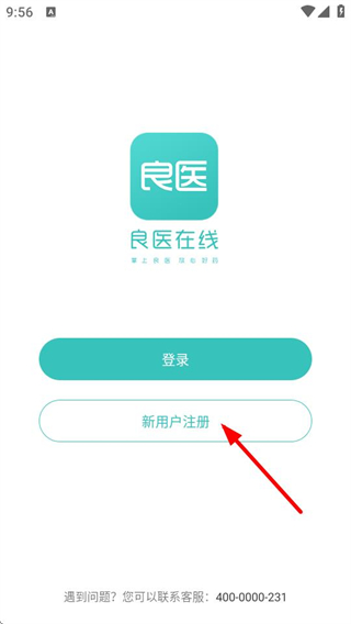 1、在良医在线APP启动页,点击新用户注册按钮,进入注册手机号填写页面。
