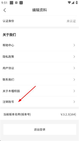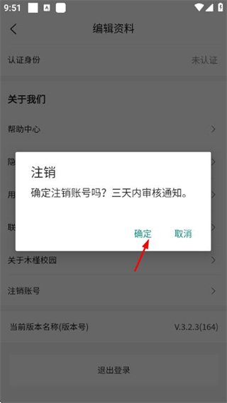 3、在编辑资料页面点击注销账号选项,弹出注销确认窗口。
