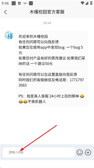 3、在对话页面点击底部的输入框,准备输入要回复的内容发送即可。