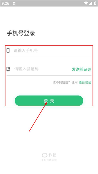 2、在手机号登录页面,输入手机号并填写收到的验证码后,点击登录。