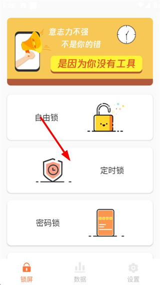 1、在自律控时锁机首页,点击定时锁选项,进入设置定时锁页面。