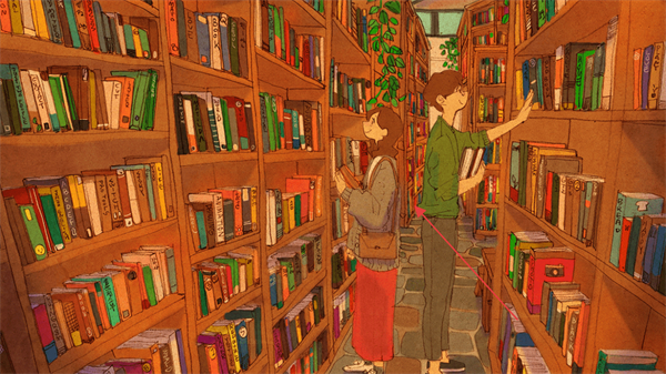 4、完成所有区域色彩填充,使整个图书馆场景变为全彩色,即可通关。