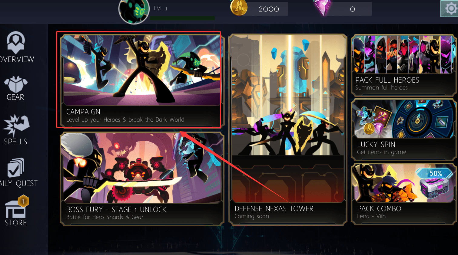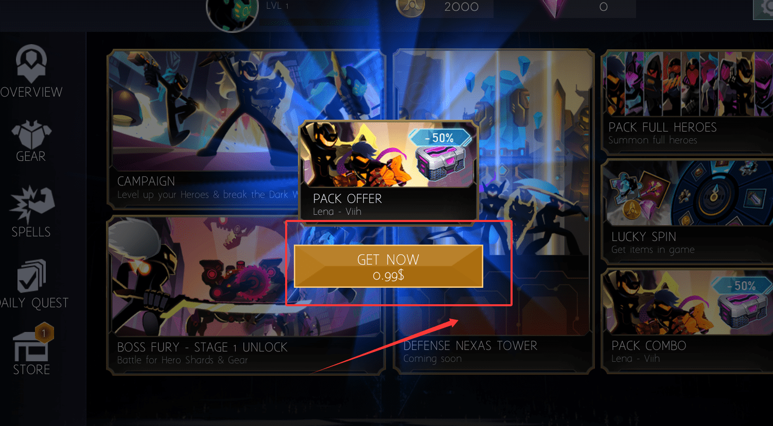 3、通过关卡积累资源后前往商店购买装备与道具,根据英雄特性与战斗风格进行合理搭配。