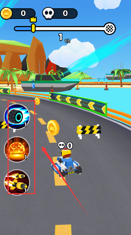 2、比赛过程中要时刻关注赛道状况,合理使用漂移技巧过弯,收集随机出现的加速道具或干扰道具。