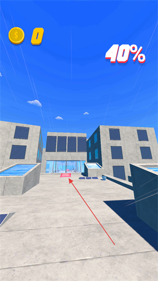 3、继续跑酷前进,进度条提升至40%,靠近目标建筑推进关卡。