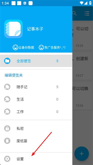 1、在便签全部页面点击左上角的菜单按钮,打开侧边栏菜单。