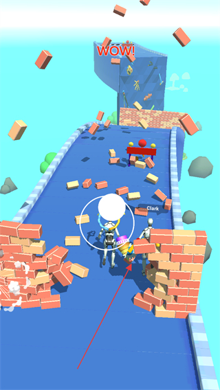 3、沿赛道前进,冲破砖墙障碍,触发WOW!特效,推进关卡进度。