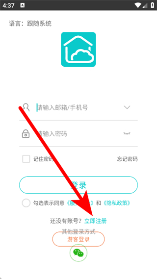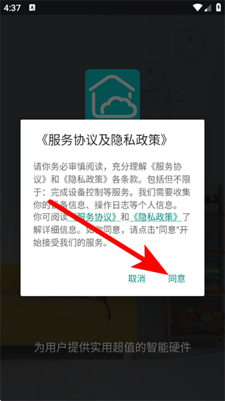 1、打开智能家居管家,在弹出弹窗中,点击同意,进入登录页面。