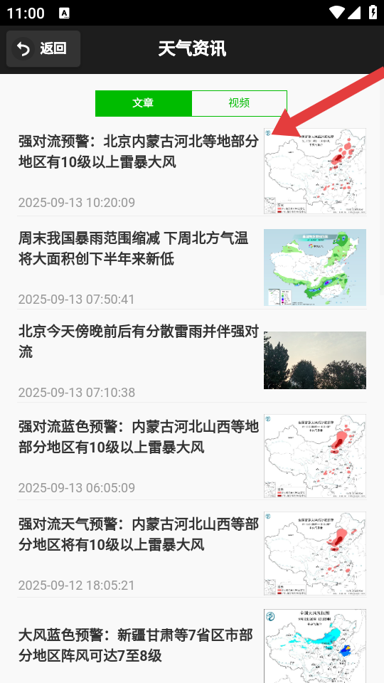 3、在天气资讯的页面,我们可以选择点击自己要查看的资讯文章。