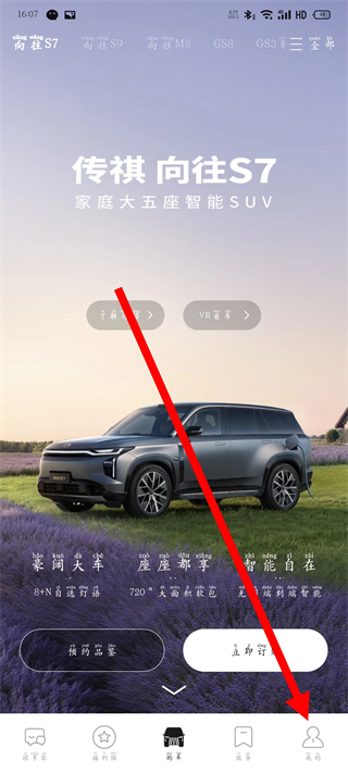 1、打开广汽传祺,点击底部我的,进入我的页面。