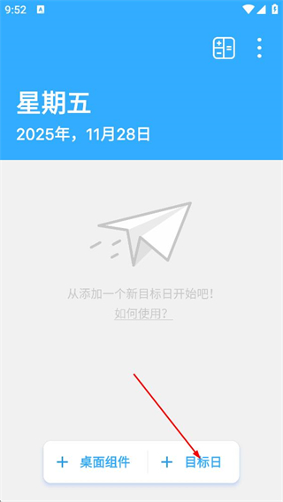 1、在目标日记录APP首页,点击底部目标日按钮,进入目标日添加页面。