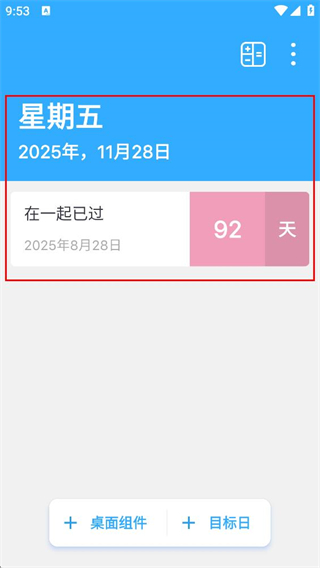 3、保存后返回首页,即可看到添加的目标日记录及对应的天数统计信息。