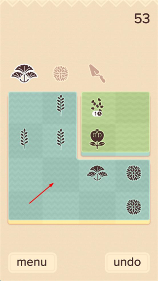 1、观察界面上方呈现的植物图标,选择对应植物,将其拖动至下方花园区域的空位处,完成首次种植操作。