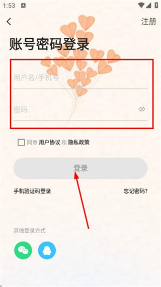 3、在密码登录页面填写手机号和密码,勾选协议后,点击登录按钮完成账号登录操作。