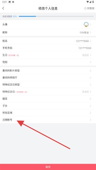 2、进入修改个人信息的页面内,找到并点击注销账号的按钮。