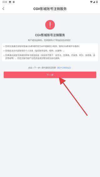 3、根据提示仔细阅读账号注销服务,点击下一步。
