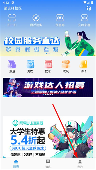 1、打开蔚来校园APP后,在底部导航栏找到我的选项并点击。