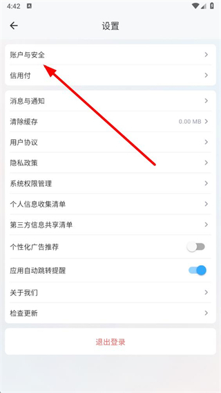 3、在设置页面找到账户与安全选项并点击,进入账号安全相关界面。