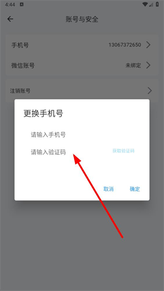 5、在输入框内输入新手机号并获取验证码填入,点击确定完成手机号修改。