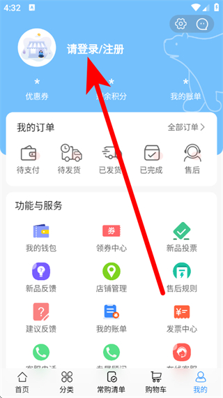 1、打开冻品到家,点击底部我的,进入我的页面。