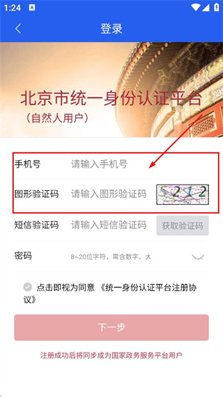 4、可以在注册页面,输入手机号,然后填写对应的图形验证码。