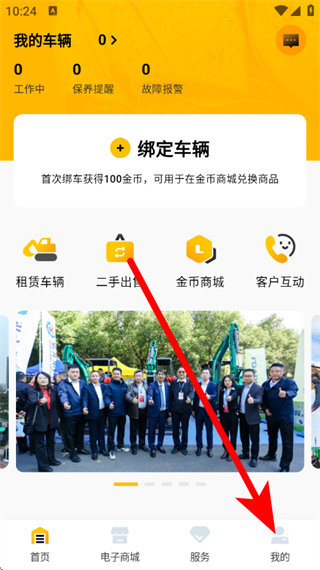 1、打开智能雷沃,在主界面点击底部我的,进入个人中心页面。
