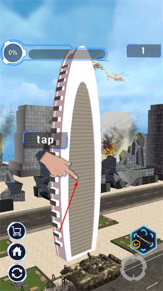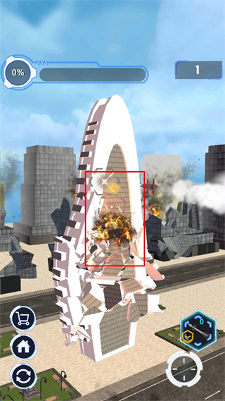 2、根据提示点击建筑对应的区域,触发武器对建筑的作用,推进破坏建筑的进程。
