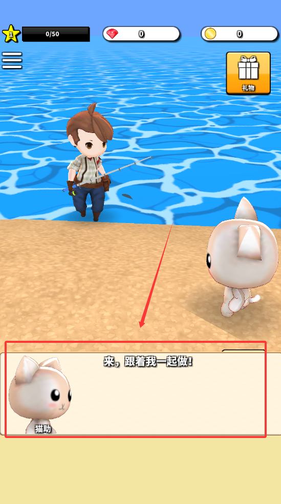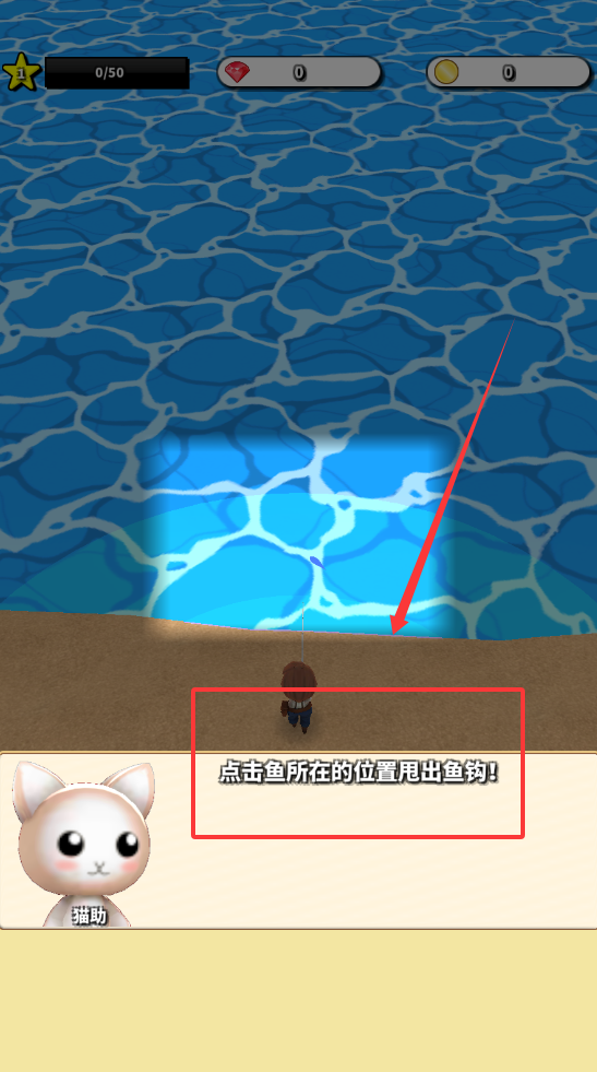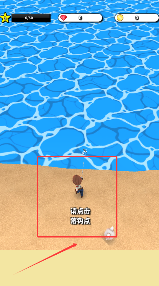 1、进入游戏后首先需要熟悉基本操作,通过点击屏幕控制角色移动探索岛屿各个区域,包括不同钓鱼地点。
