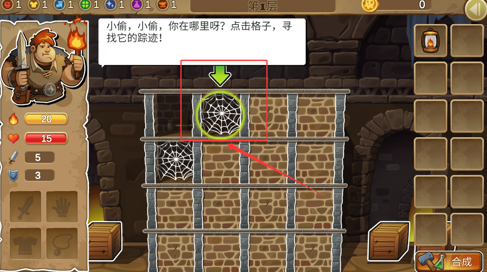 1、进入游戏后,首要目标是追捕偷鸡贼,通过快速点击屏幕探索地牢区域,扩大视野范围,从而收集更多资源。