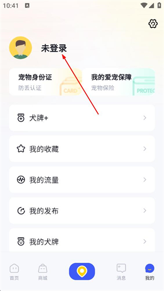 1、在宠物类APP首页,点击底部导航栏的我的,进入个人页面。