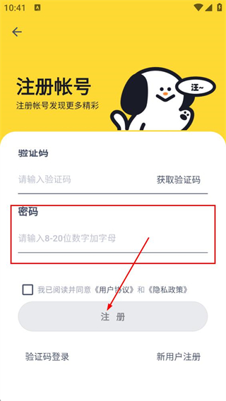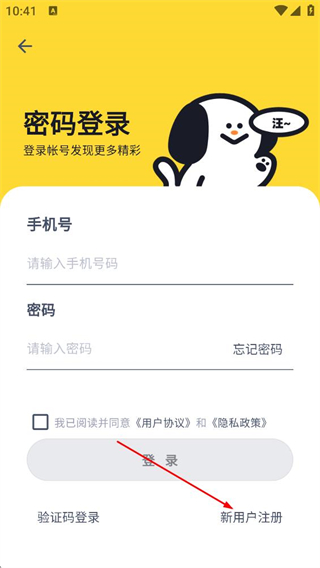 3、在密码登录页面,点击新用户注册,进入注册帐号页面。