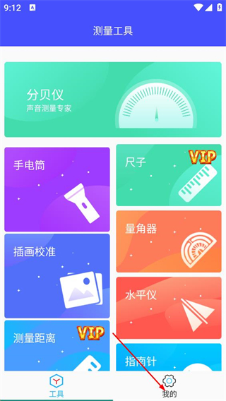 1、在测量工具的工具页面,点击底部的我的,进入我的页面。