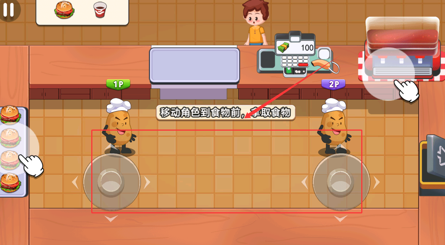 1、在游戏初始阶段,玩家需要熟悉基础操作与设备功能,两位玩家应当明确分工,分别负责食材处理与烹饪加工。