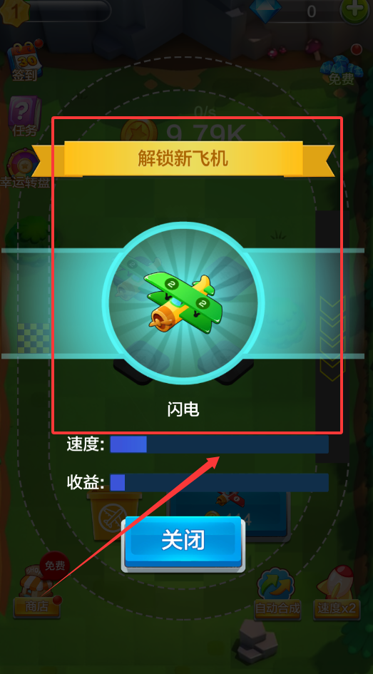 1、通过商店解锁各类必需资源,开启轻松愉快的合成挑战过程,利用简便操作完成资源积累与飞机合成。