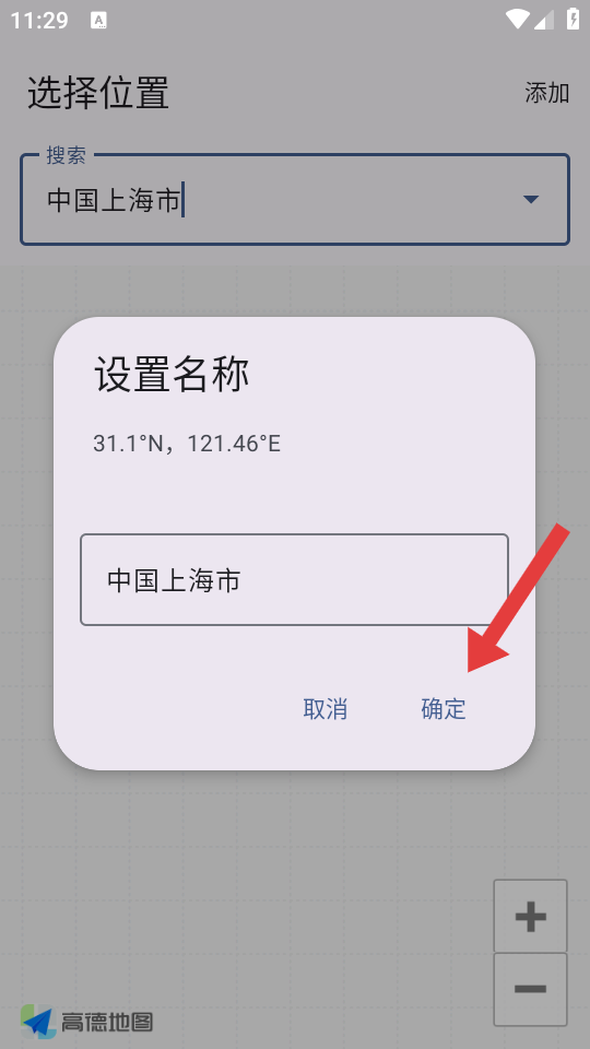 4、在弹出的设置名称弹窗中,确认城市名称后点击确定按钮,完成城市添加。