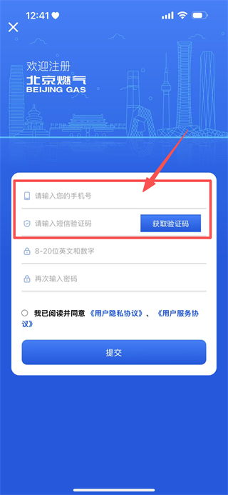 4、在注册页面,填写手机号,获取验证码填写短信验证码。
