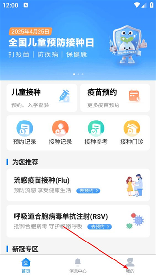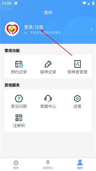 1、在首都疫苗服务的首页,点击底部我的,进入个人页面。