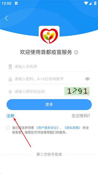 3、在登录界面,点击注册选项,进入手机号注册页面。