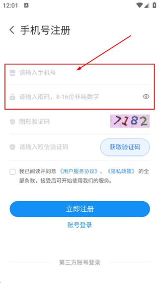 5、输入图形验证码,填写收到的短信验证码,点击立即注册,完成账号注册操作。