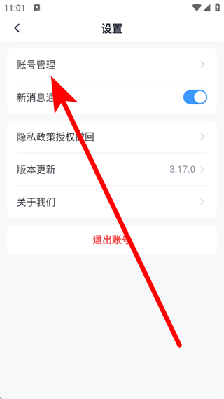 3、在设置界面,点击账号管理,进入账号管理页面。