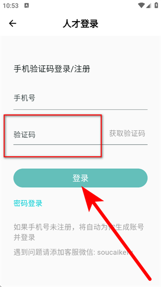 3、在人才登录页面,输入手机号,点击获取验证码。