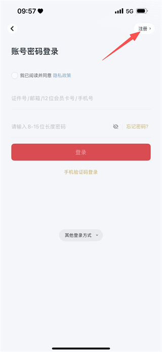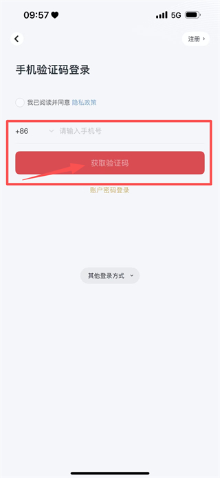 3、在账号密码登录页面,点击手机验证码登录选项,切换到登录页面。