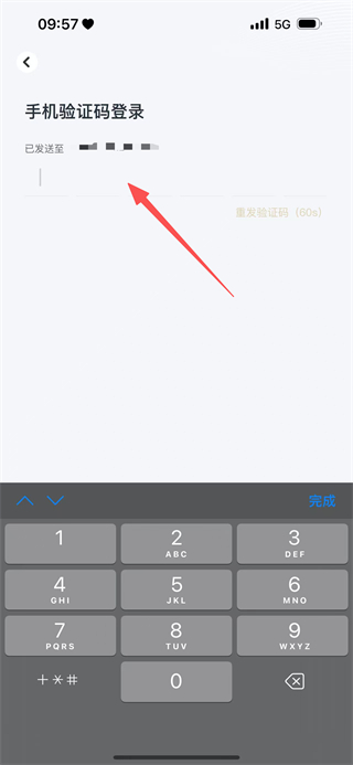 5、在手机验证码登录页面,填写收到的验证码,完成该应用的登录操作。