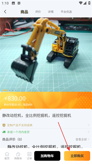 3、在商品详情页,点击立即购买按钮,可完成该商品的购买流程。
