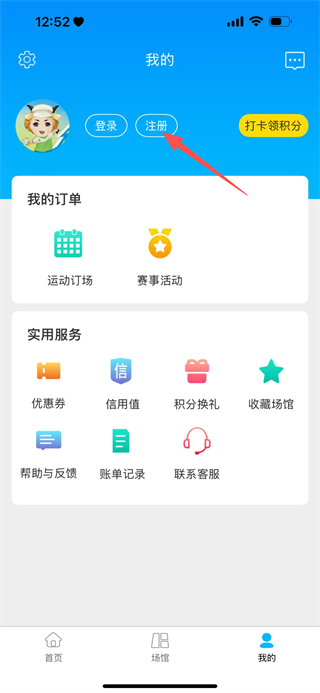 2、在我的页面,点击注册的按钮,进入注册/登录页面。