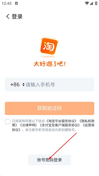 2、在当前登录页面,点击账号密码登录的选项,切换到账号密码登录界面。