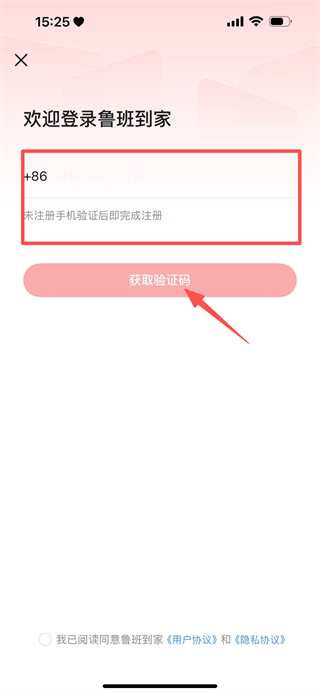 3、在登录页面,填写手机号,点击获取验证码,触发短信验证码发送。