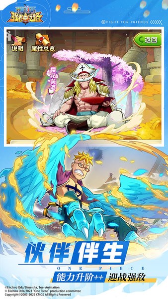 为了梦想百折不挠的“草帽小子”路飞、贯彻“武士道”精神的三刀流勇士佐罗、厨艺精湛的绅士海盗山智、古灵精怪的天才航海士奈美、擅长狙击的智慧型战斗员撒谎布、集力量与卖萌本领于一身的可爱驯鹿乔巴等草帽团成员与海军三大将、七武海、四皇共同登场,玩家可根据每位角色的不同特性,组合成各种超强团队阵容,驰骋伟大航路,探寻神秘宝藏!