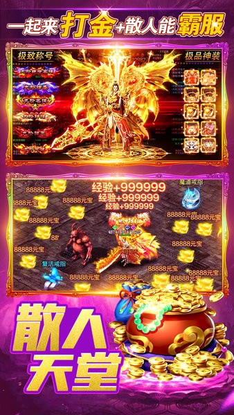 13年传世荣耀,百万行会,千万兄弟,一呼百应,再战沙城!原版复刻端游经典设定,战法道三职业、打宝、爆装、热血攻沙,指间驰骋 “传世经典”。